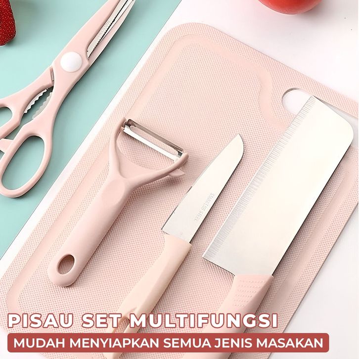 BARU Pisau Set Dengan Talenan Pisau Kupas Buah 3in1 Praktis onamnk