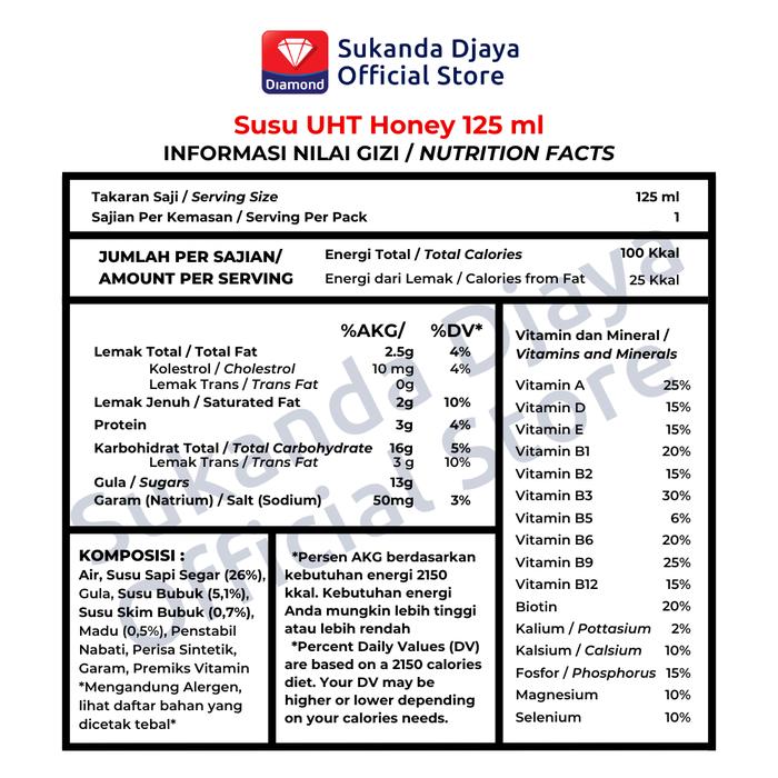 Diamond Milk Susu UHT Honey 125 ML 1 Karton