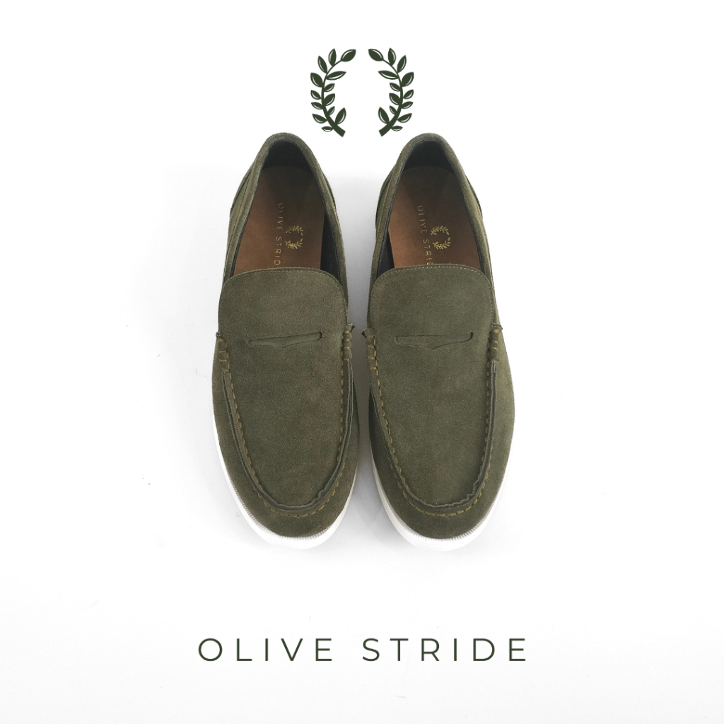 Olive Stride - Vincent Loafers in Olive Green Sepatu Slip on Pria Olive