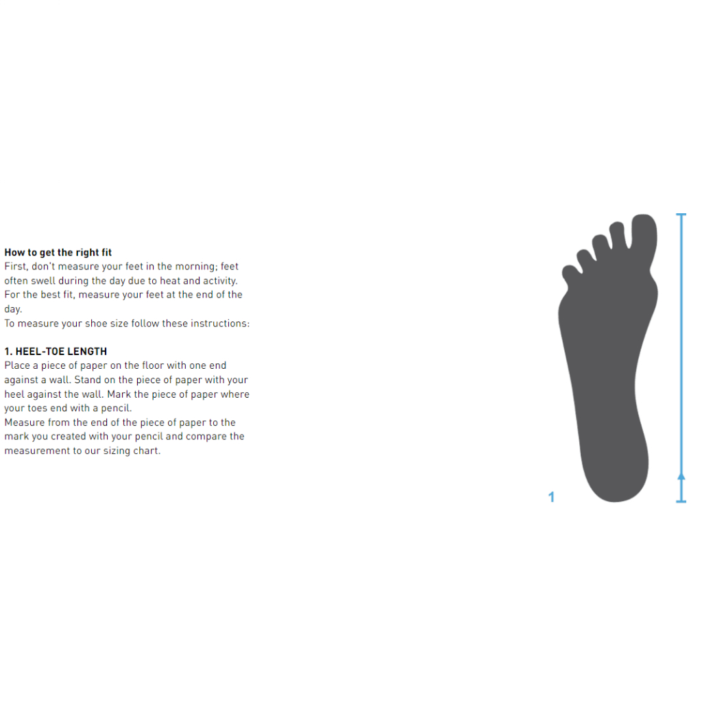EUR 36 / 22.5cm, EUR 37/ 23.5cm, EUR 38/ 24cm, EUR 39/ 24.5cm, EUR 40 / 25cm, EUR 41 / 26cm, EUR 42 / 26.5cm, EUR 43 / 27.5cm, EUR 44 / 28cm, EUR 45 / 29cm
