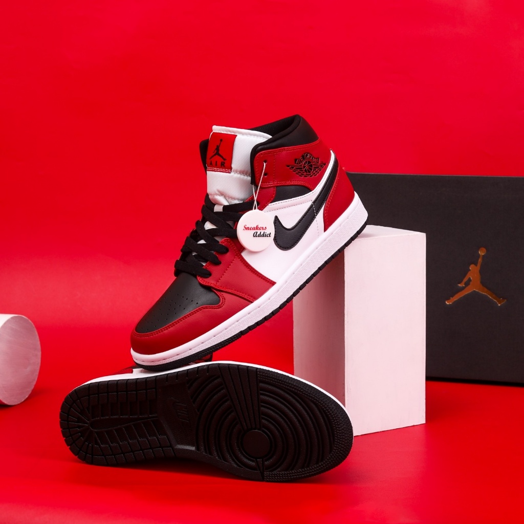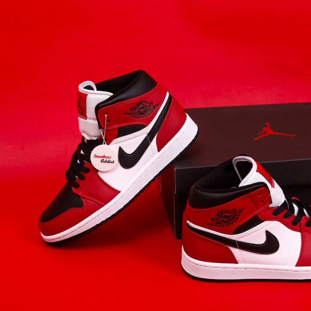 Sepatu Sneakers Nike Air Jordan 1 Mid Chicago Red Black Toe 100% BNIB