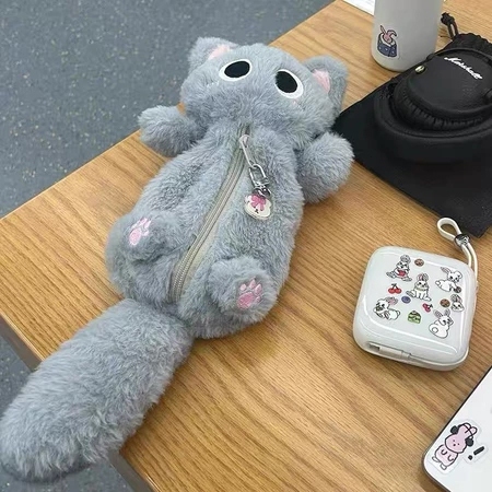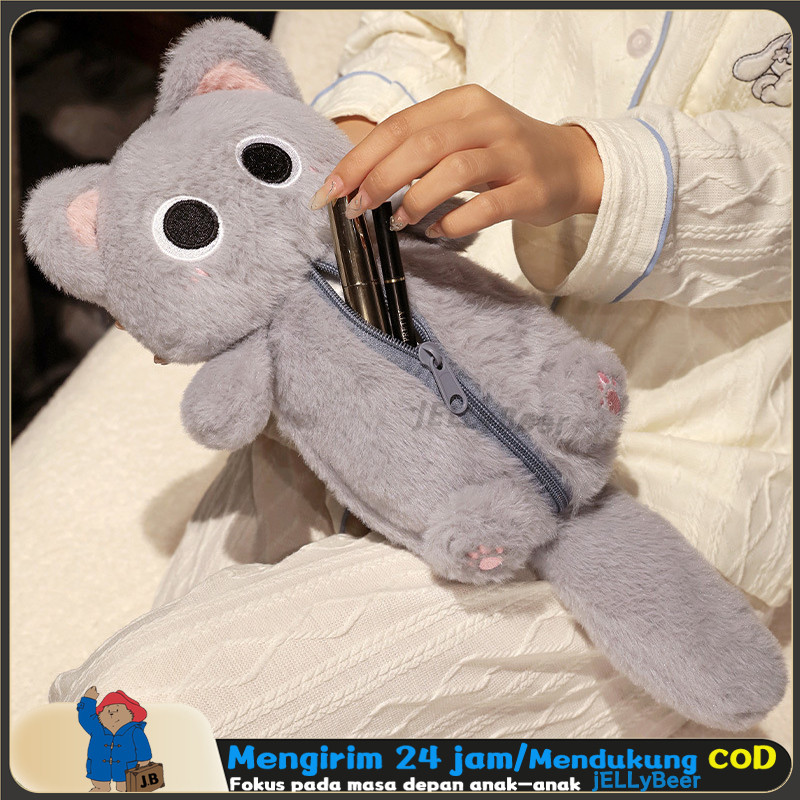 Kantong Pensil Kucing Kartun Lucu Tas Penyimpanan Alat Tulis Besar Kotak Pensil Boneka Mewah Tas Kantong Pensil Kucing A
