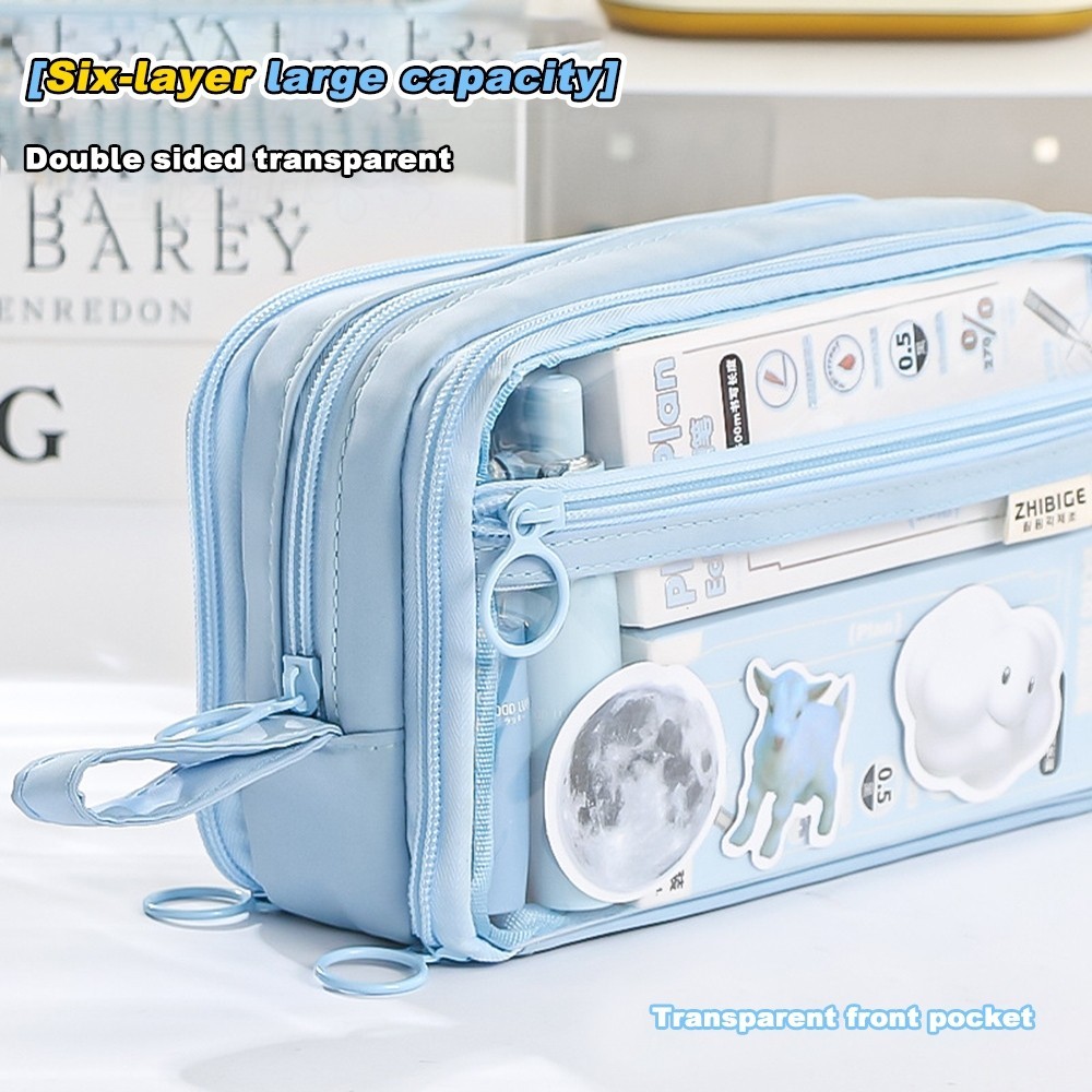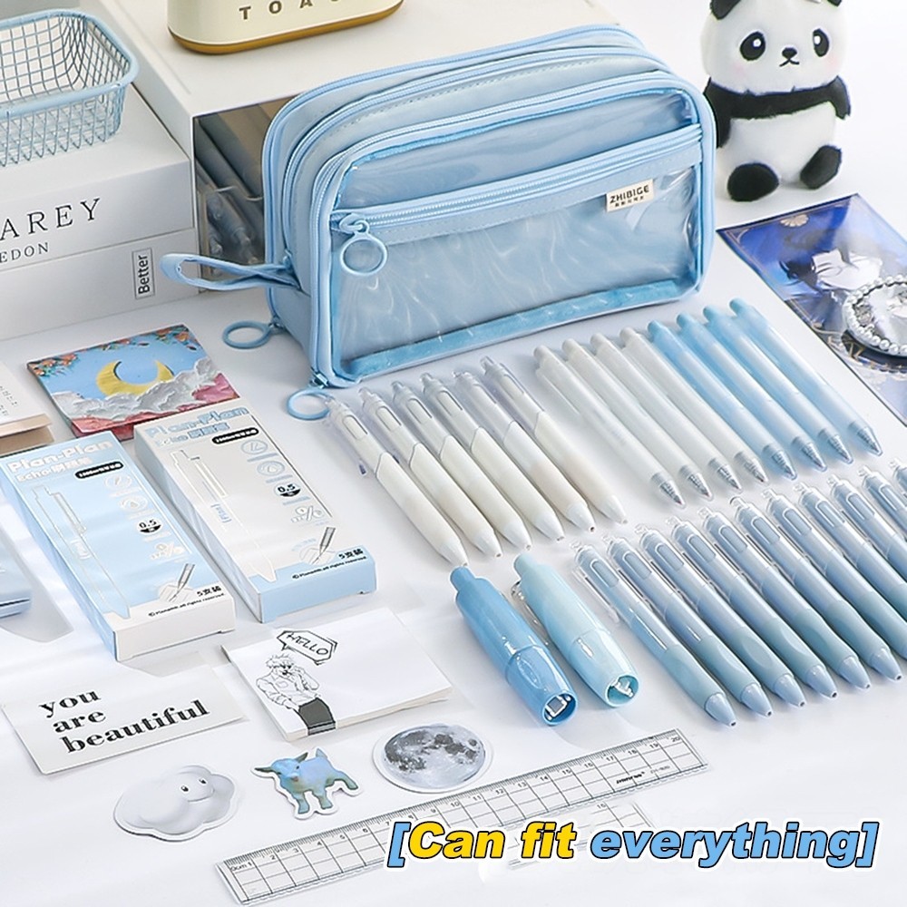 [DOTDING] Kotak Pensil Transparan Aesthetic Korean Style - Desain Unik 3 Lapis Zipper Kapasitas 40+ Pensil/Transparent