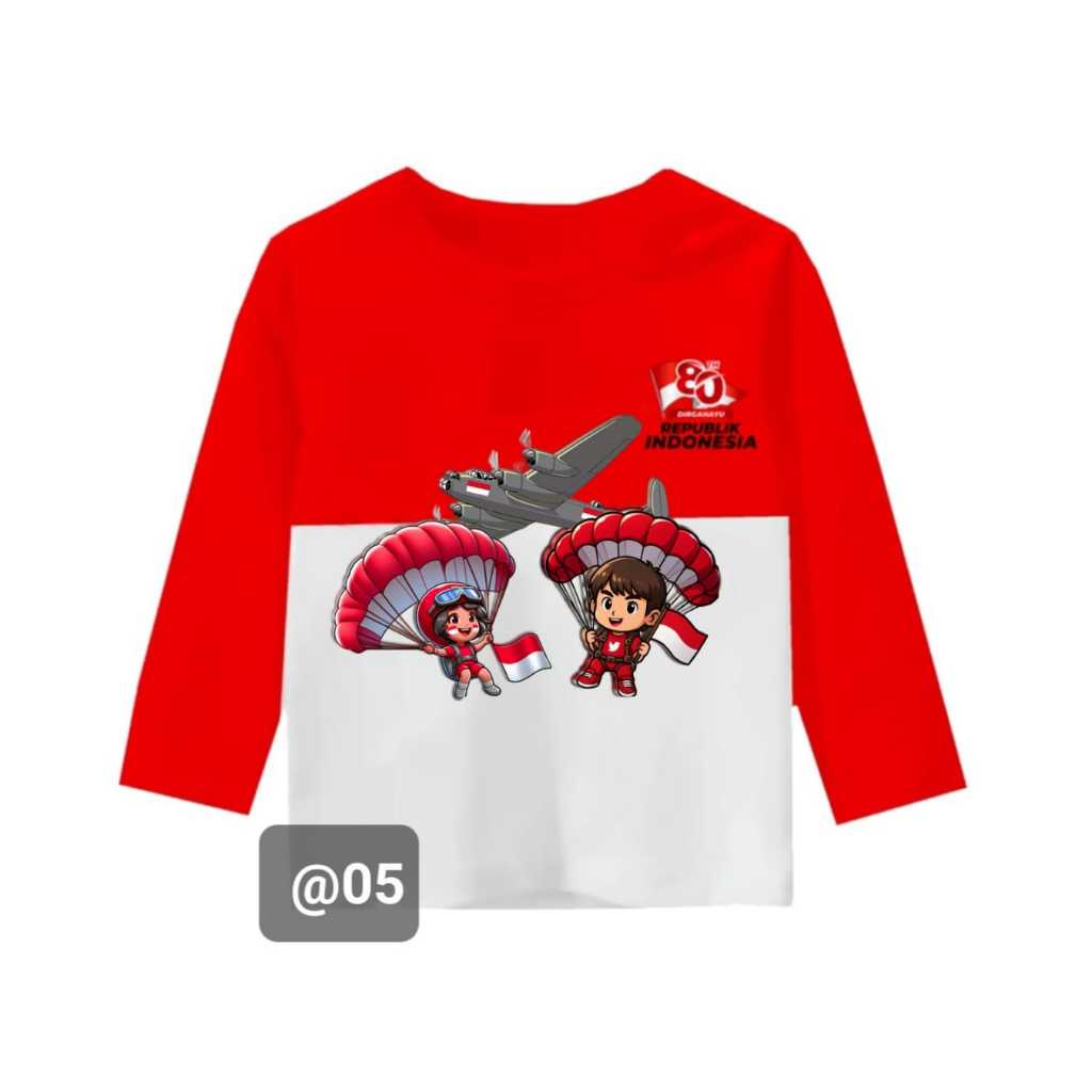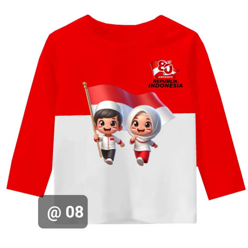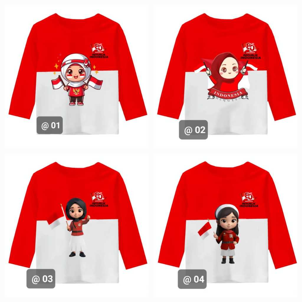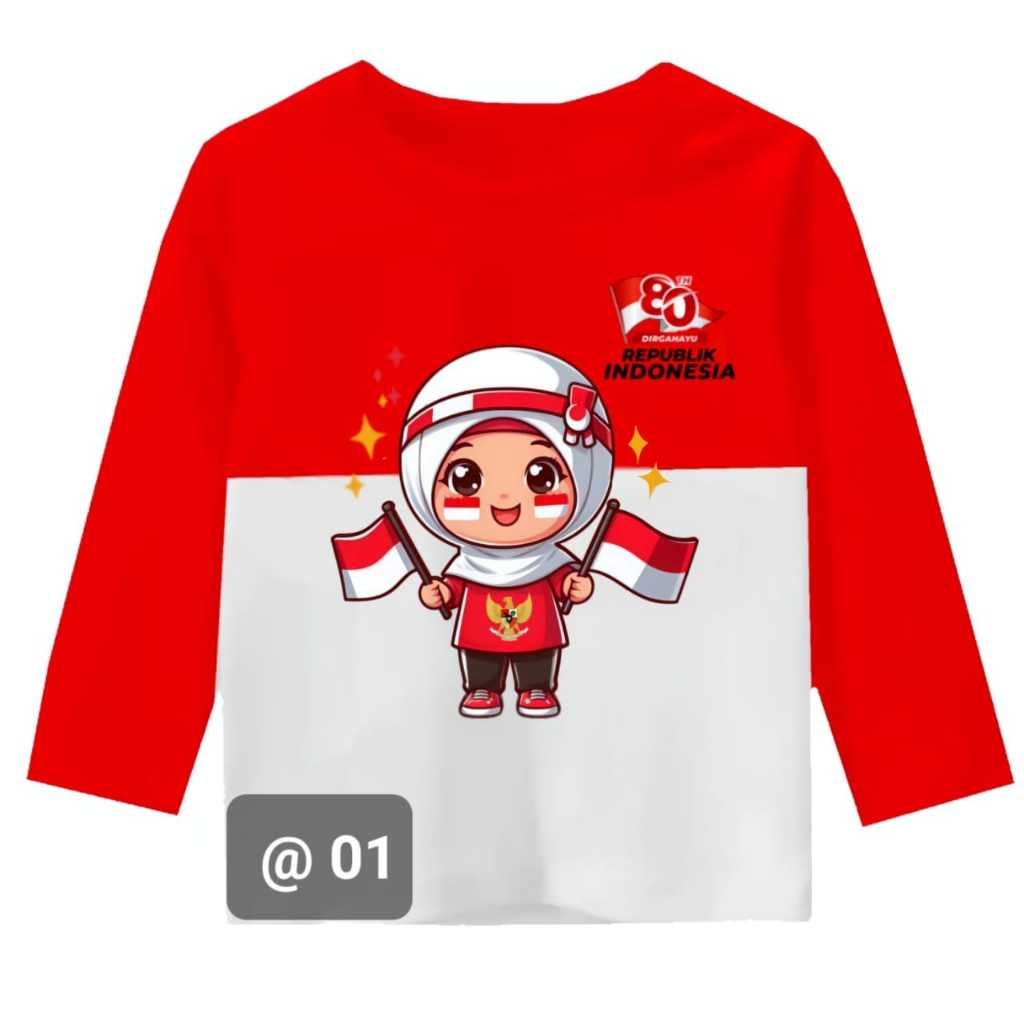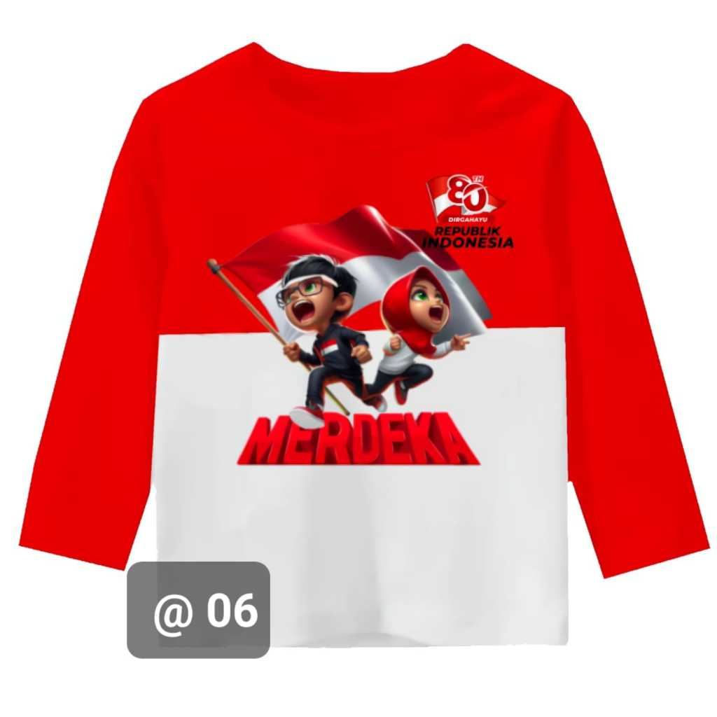 Baju Santai Kaos Motif MERDEKA MERAH PUTIH AGUSTUSAN Lengan Panjang Usia 2-12 Tahun Atasan Anak Laki -Laki Perempuan