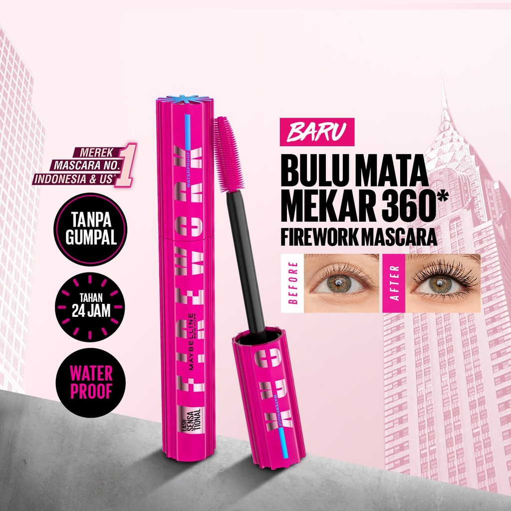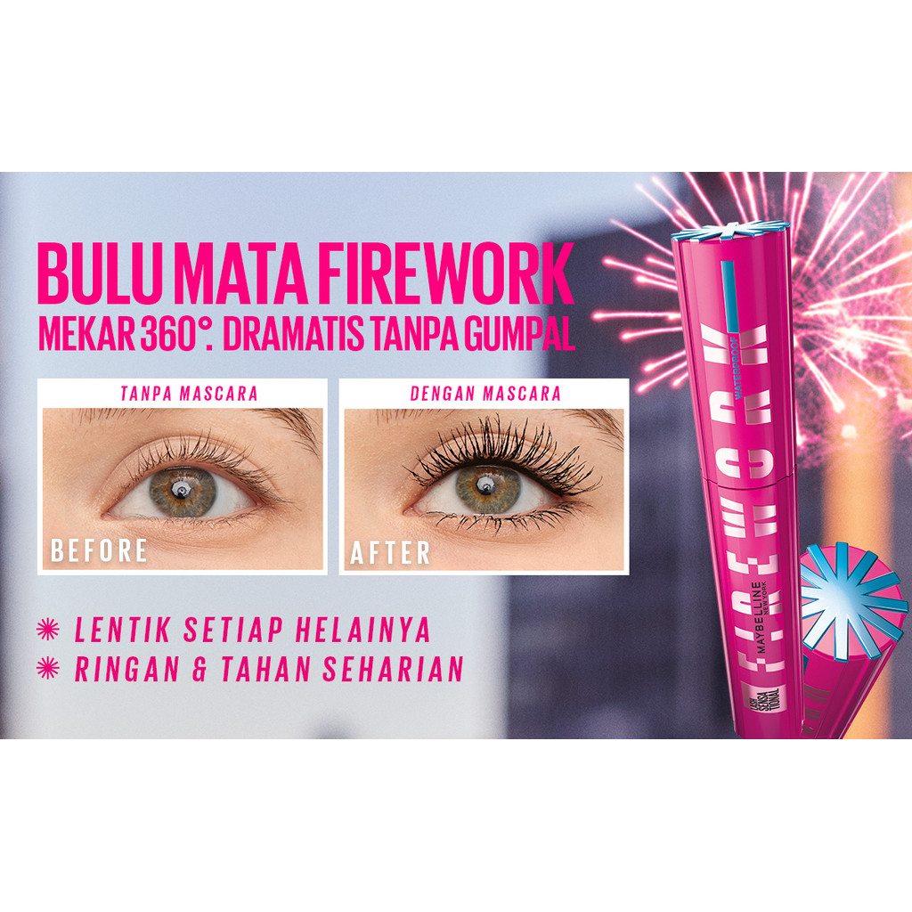 MAYBELLINE Firework Waterproof Mascara 6ml no clump volume lash lift | Merah Jingga Official