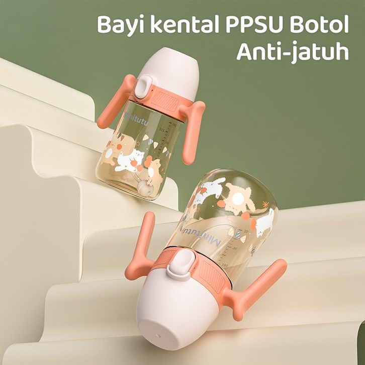 Minitutu 300ML/240ML botol minum bayi botol susu anak 1 tahun Botol Susu Bayi Bahan PP/PPSU 3IN1 leher bebas dengan bola
