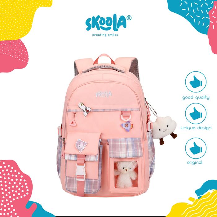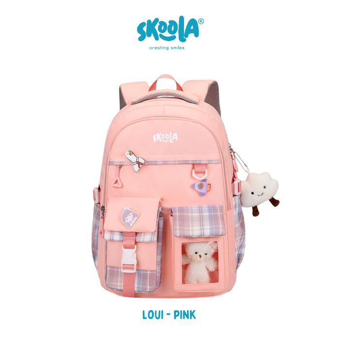 TERLARIS SKOOLA TAS SEKOLAH ANAK SD PEREMPUAN RANSEL FREE KEYCHAIN BONEKA PIN LOUI FASHION RINGAN RAPI TAS & KOPER