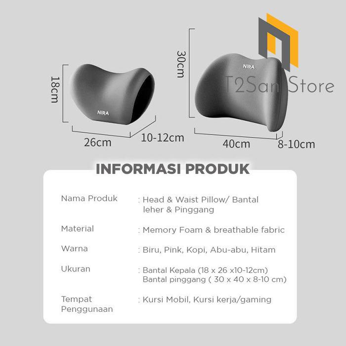 FLASH SALE BANTAL LEHER & PINGGANG MOBIL MEMORY FOAM PREMIUM NIRA HEAD & WAIST PILLOW PREMIUM PINK BANTAL KEPALA