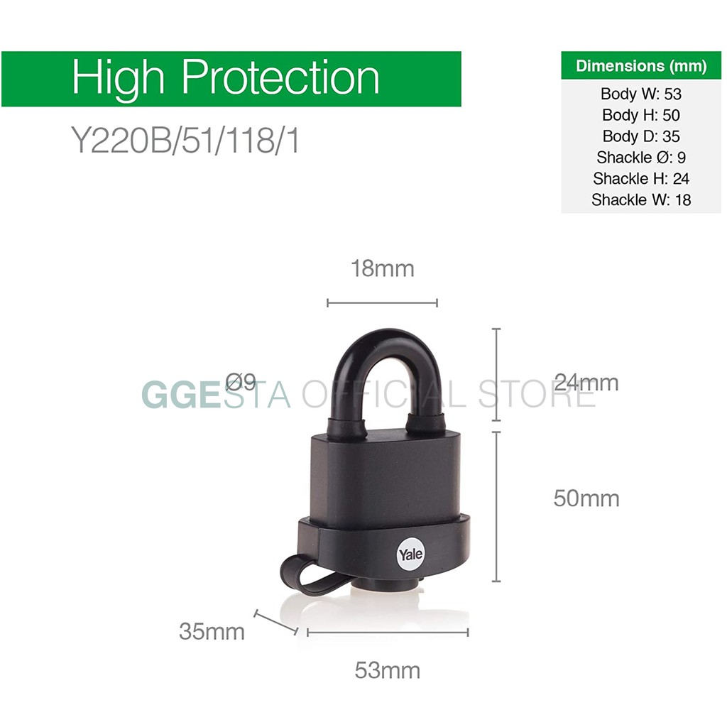 YALE Gembok Pagar Y220B/51/118/1 Weatherproof Series - Tahan Cuaca & Karat