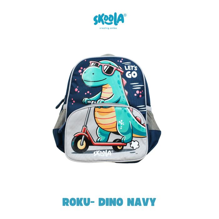 TERLARIS SKOOLA TAS SEKOLAH ANAK PAUD LAKI LAKI RANSEL DINOSAURUS ROKU ROKU DINO NAVY