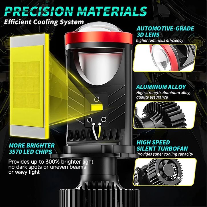 Lampu Motor 【】2PCS Y7D Lampu Led Mobil Dan Motor H4 /Biled/ Mini Y7D Super Bright 130 Watt Original Dengan turbo kipas