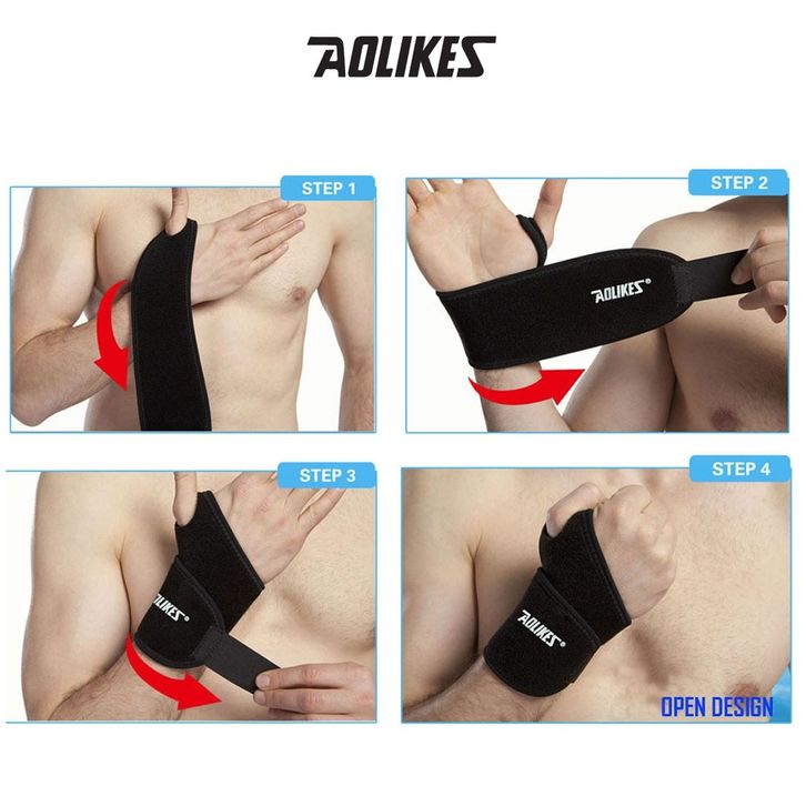 TERBARU Aolikes 7937 Wrist Band Support Weight Lifting - Strap Gym BLACK agoss