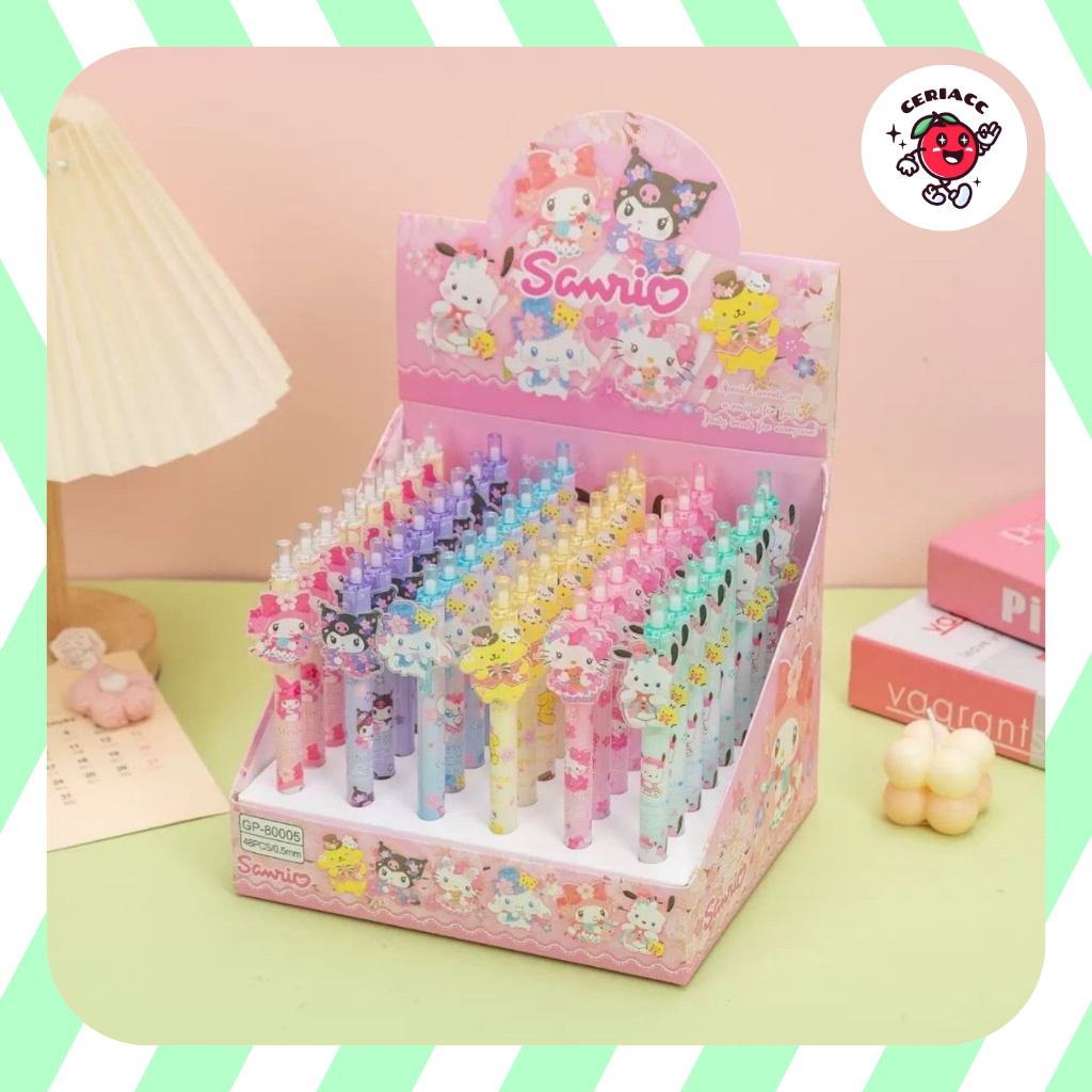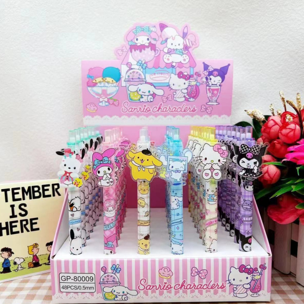 [ATK] 1 pack isi 48 pcs Pulpen gel mekanik / pulpen cetek karakter Kartun Lucu (6)