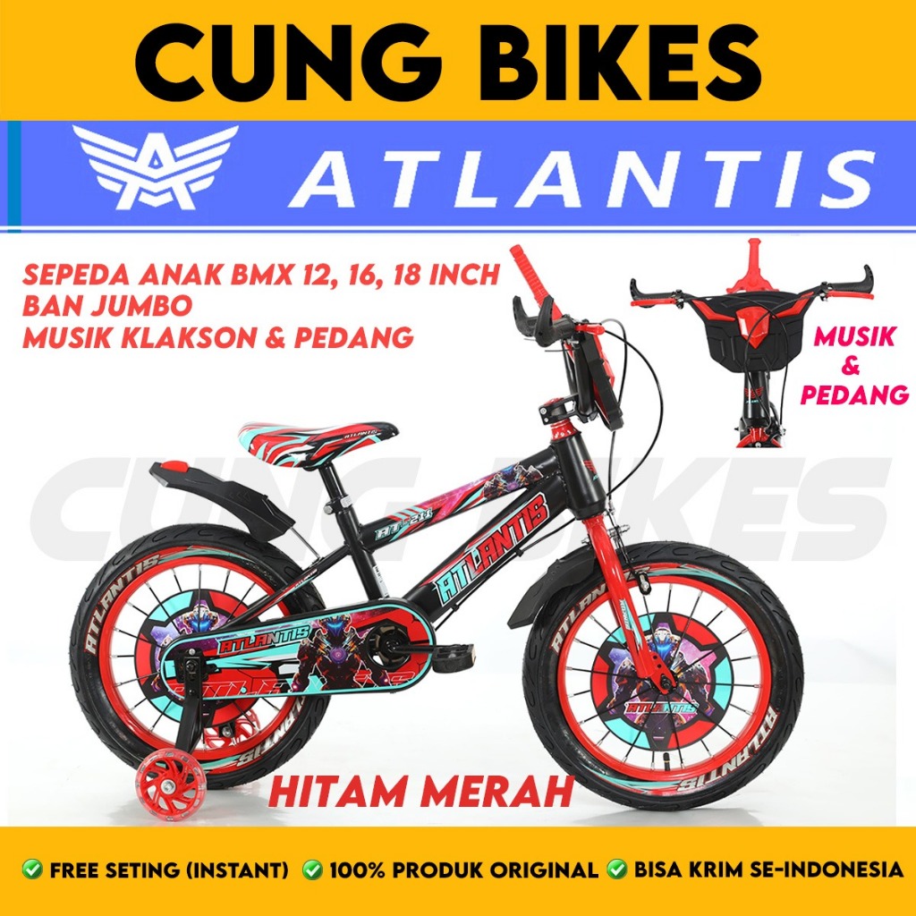 Sepeda Anak Laki BMX Ukuran 12 16 18 Inch ATLANTIS 211 Ban Jumbo+musik Dapat Pedang