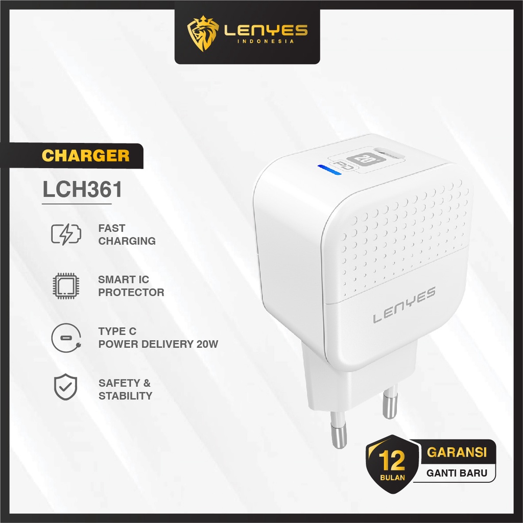 LENYES LCH361 PD 20W Fast Charging 3.0A Power Delivery Adaptor Charger Port Type C Batok Kepala Casan