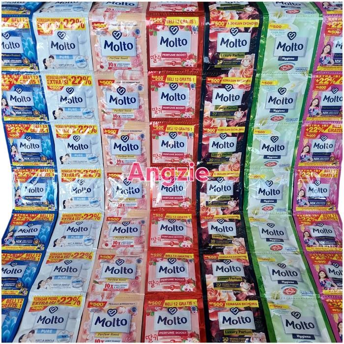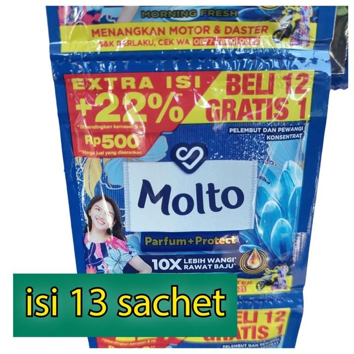 Terlaris Molto pelembut dan pewangi pakaian 1 renceng isi 12 sachet - Biru Muda Promo