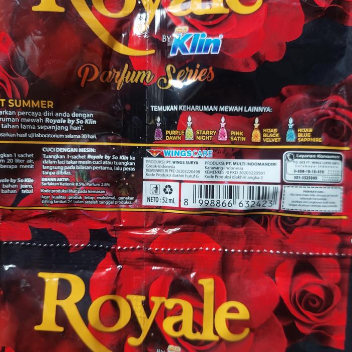 Murah Royale pelembut pakaian konsentrat k3mm4san 1000 1 renceng isi 8 sachet ( 16 pcs kanan kiri ) - Hot Promo