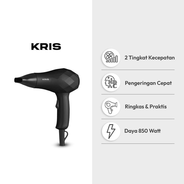 KRIS HAIR DRYER TRAVEL MINI 850 WATT - HITAM
