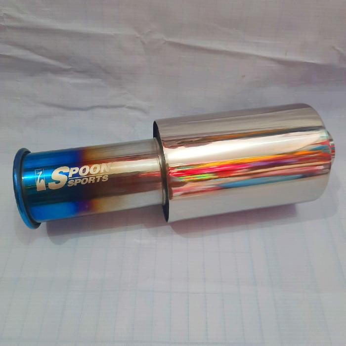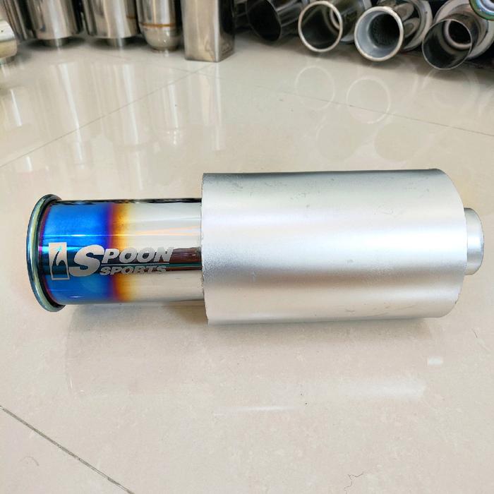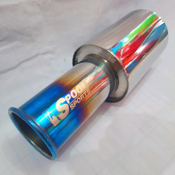 TERLARIS KNALPOT SPOON SPORT BLUE BURN TIP UNIVERSAL SUARA KERING DENGAN LASER MARKING MOTORCYCLE PEREDAM FULL