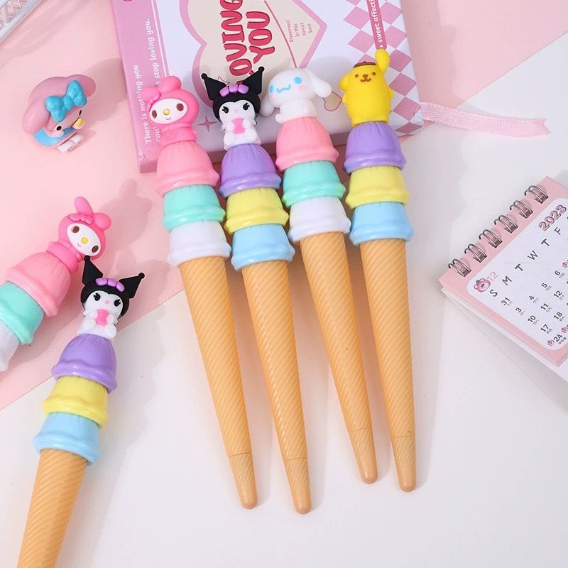 (12 PCS) PEN ES KRIM SANRIO ICE CREAM PULPEN PENA BOLPEN MELODY CINAMOROLL KUROMI PURIN GEL TINTA