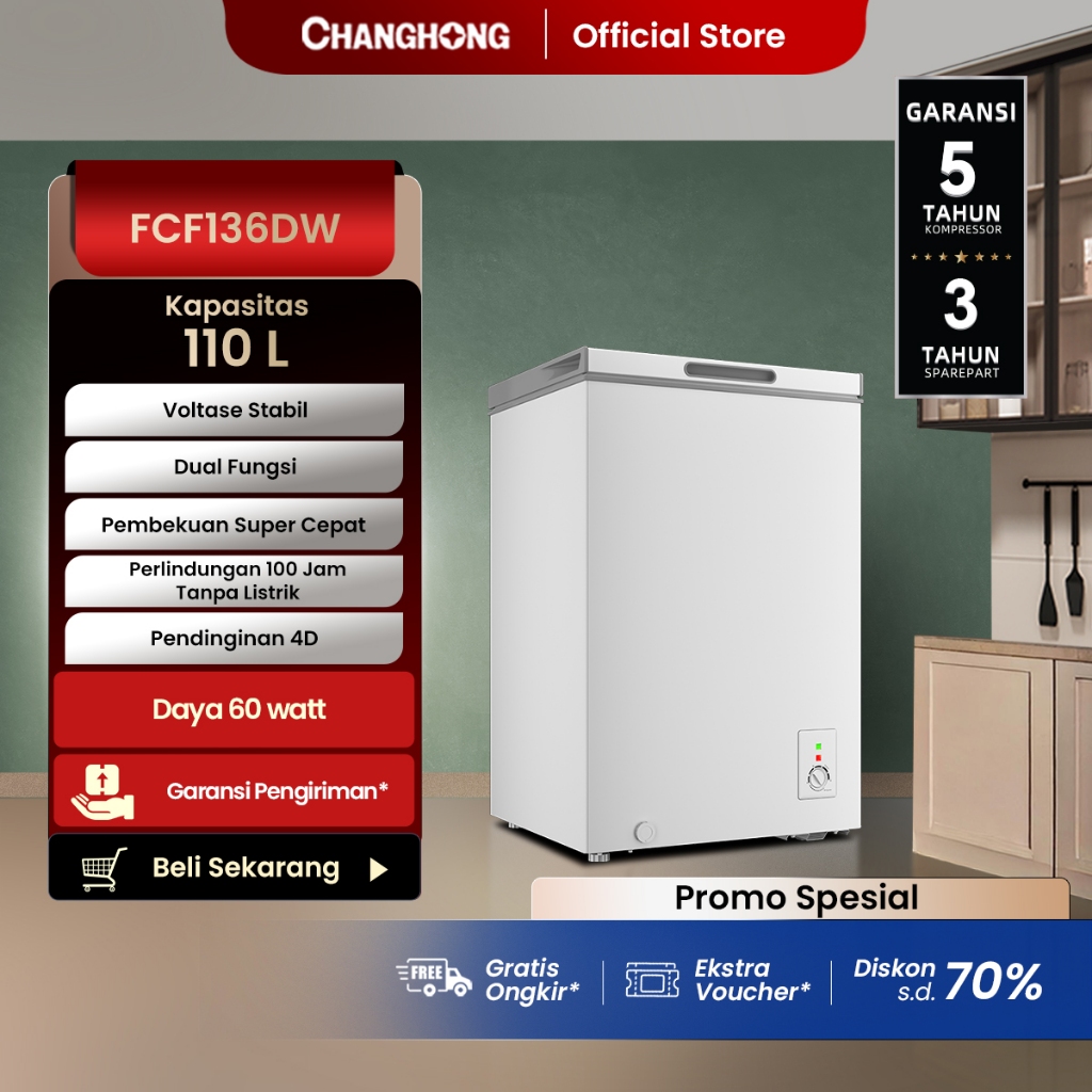 CHEST FREEZER FCF136DW KAPASITAS 110 LITER (FAST FREEZING) (DESIGN LOOK MINIMALIS) (