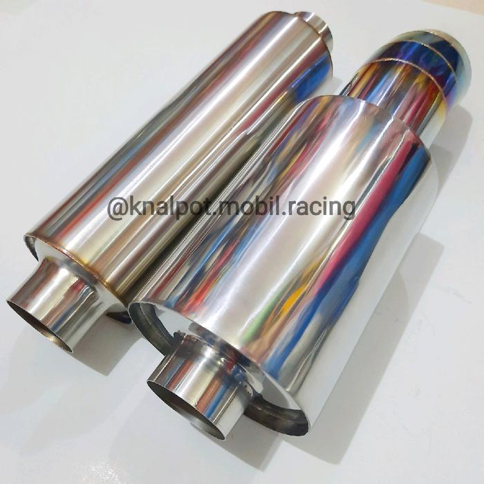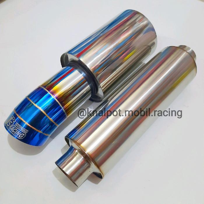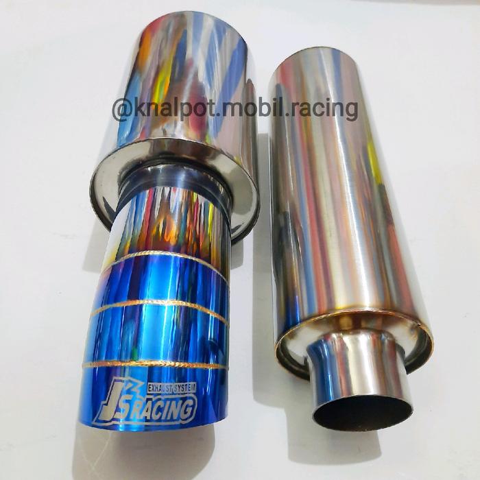 TERLARIS KNALPOT MOBIL JS RACING BLUE DENGAN RESONATOR DENGAN LASER MARKING MOTORCYCLE PEREDAM JS RACING BLUER