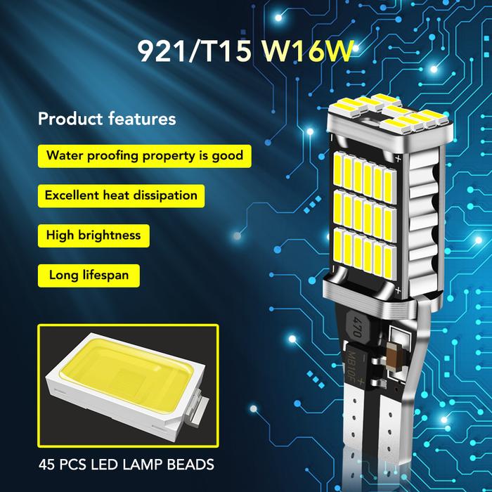 FLASH SALE 1 PCS LAMPU LED MUNDUR T15 W16W T10 W5W CANBUS 12V SMD 4014 45 MATA 1000LM CAR PUTIH