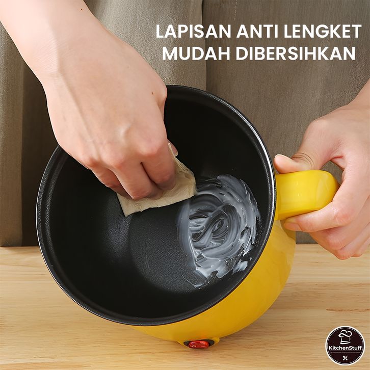 Panci Listrik 450W dengan Pengukus - Diameter 18cm - Teflon Anti Lengket | KITCHEN STUFF