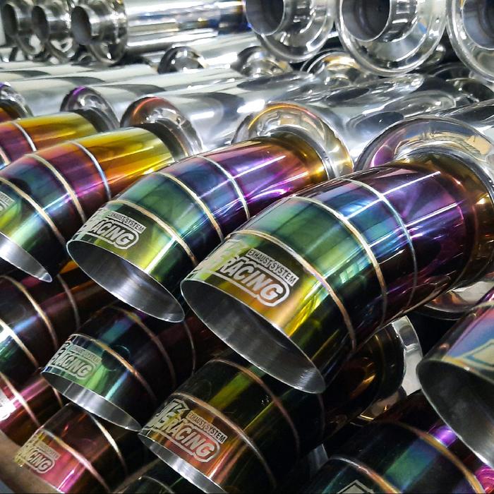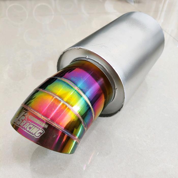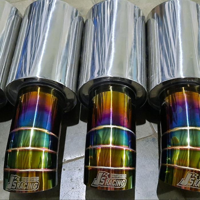 TERLARIS KNALPOT MOBIL JSRACING RAINBOW SUARA BASS KERING DENGAN LASER MARKING MOTORCYCLE PEREDAM FULL STAINLE