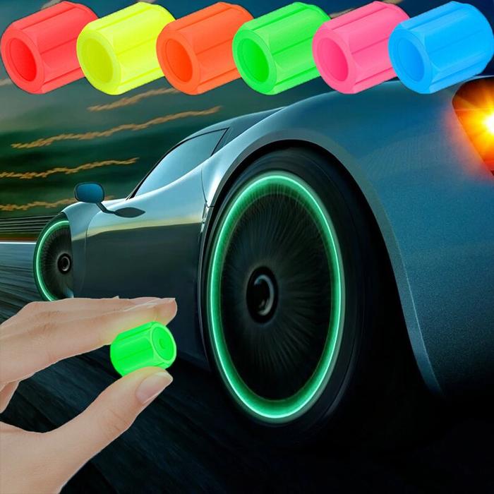 FLASH SALE 4PCS TUTUP BAN TUBELESS SEPEDA MOTOR MOBIL GLOW IN THE DARK NEON GLOWING CAR TIRE SKULL KUNING