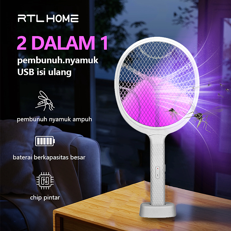 Rtl Raket Nyamuk Elektrik Cas Ori Tahan Lama Murah Awet Charger Usb 2 In1 Raket Nyamuk Standing