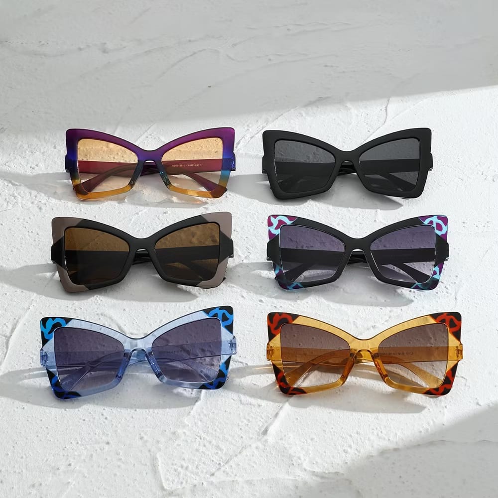 Kacamata Wanita Oversize Lensa Gradiasi Model Cat Eye Kupu-Kupu Style Vintage PLWW23
