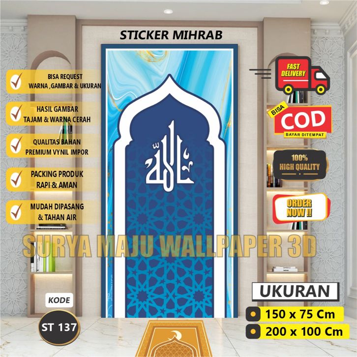 Wallpaper Dinding Custom!! Sticker Mihrab Mushola Rumah, Kantor, Dll