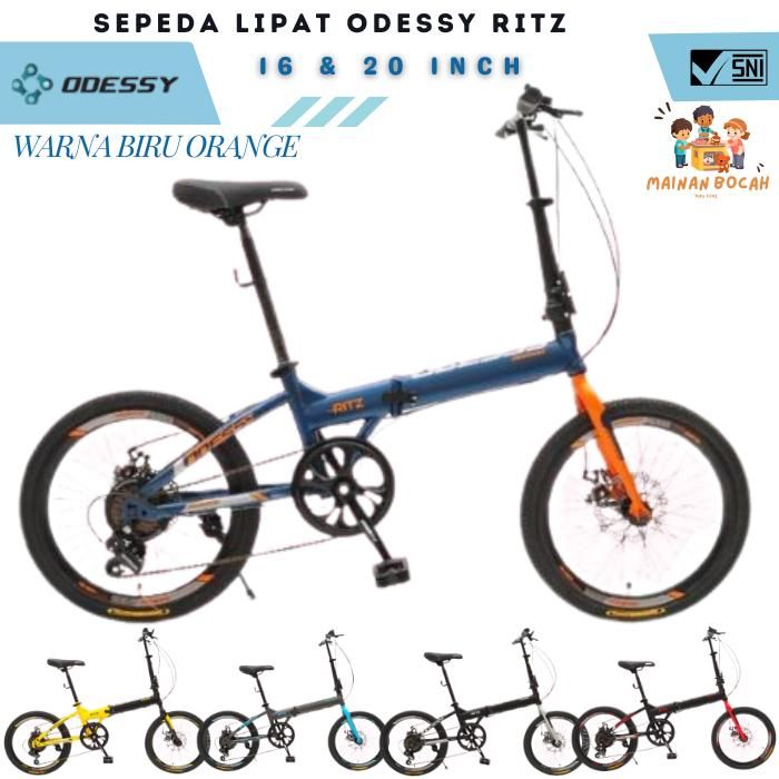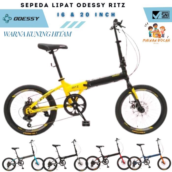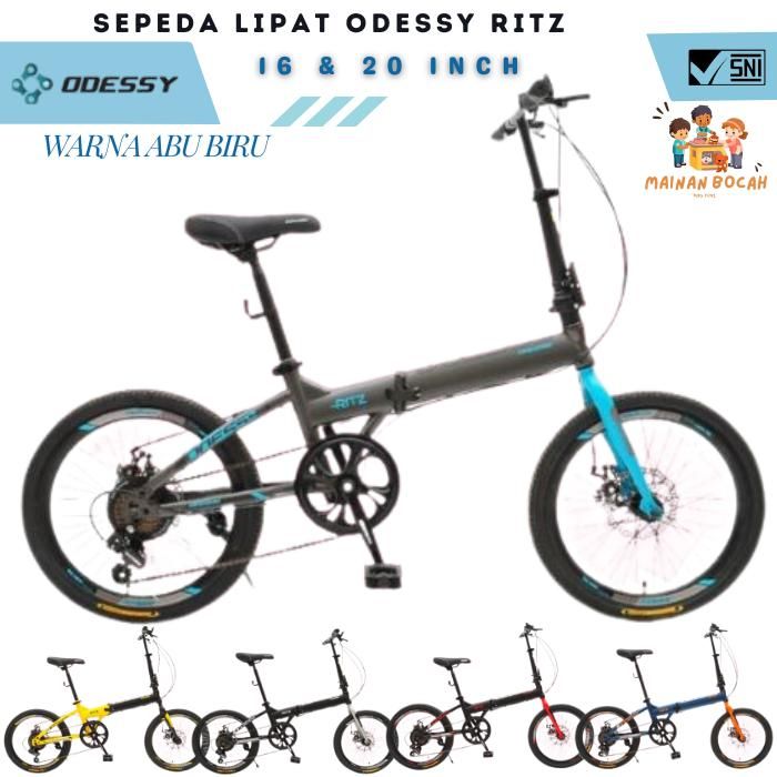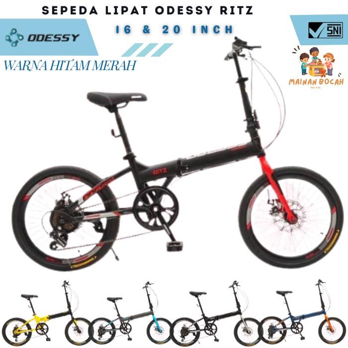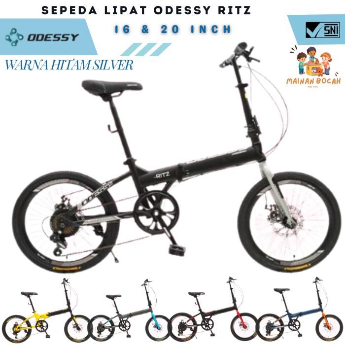 Sepeda Lipat Odessy Ritz 7 Speed Ukuran 16 & 20 Inch - Hitam Silver 16
