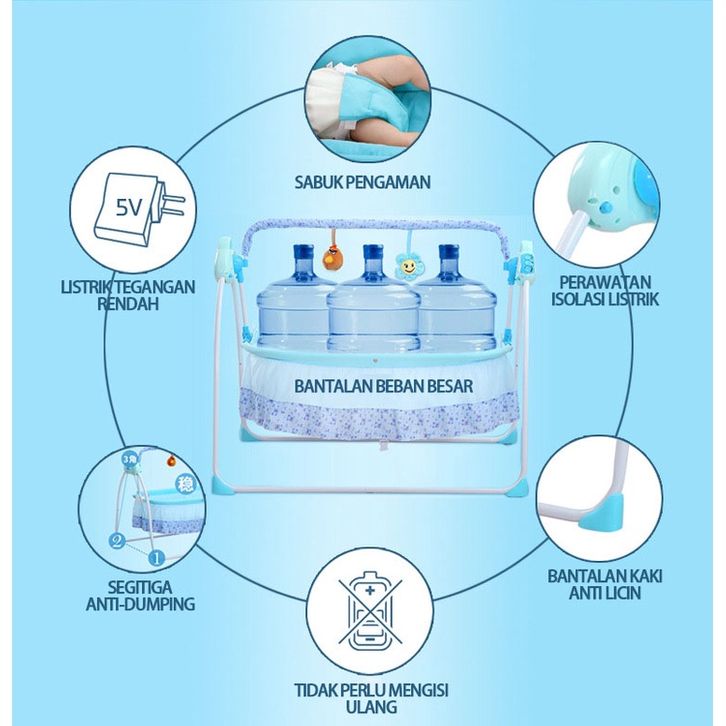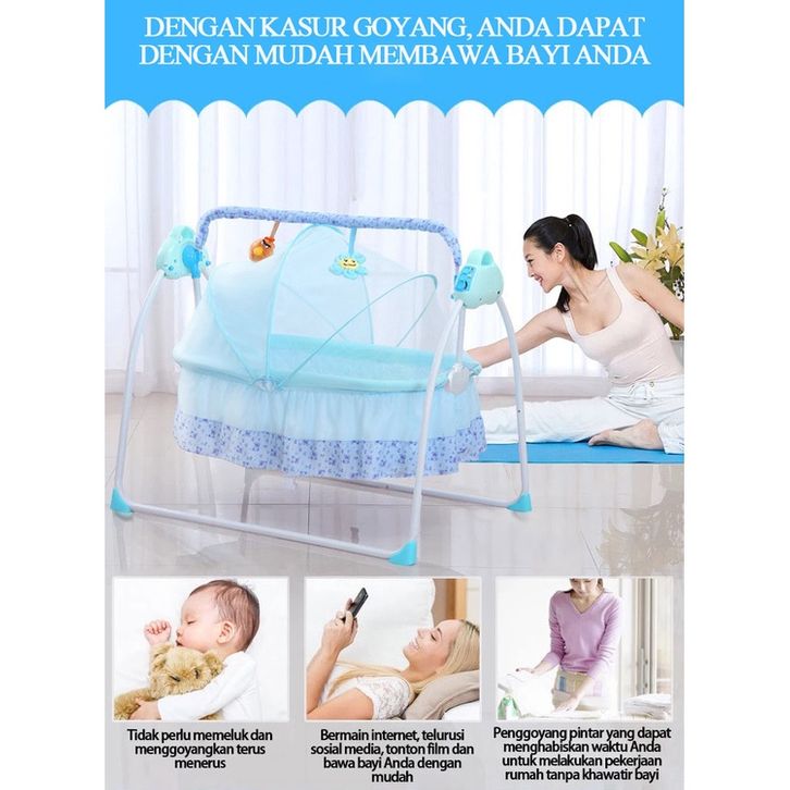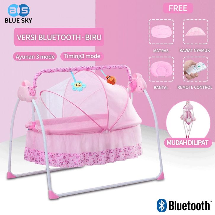BLUE SKY kasur bayi set kelambu / Kasur Kelambu Bayi Set Bantal /ayunan bayi elektrik + musik