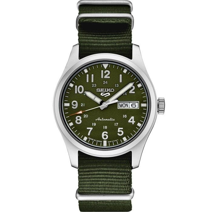 Jam Tangan Pria Seiko 5 Sports Field Military Style Green Nylon SRPG33K1 Automatic Original