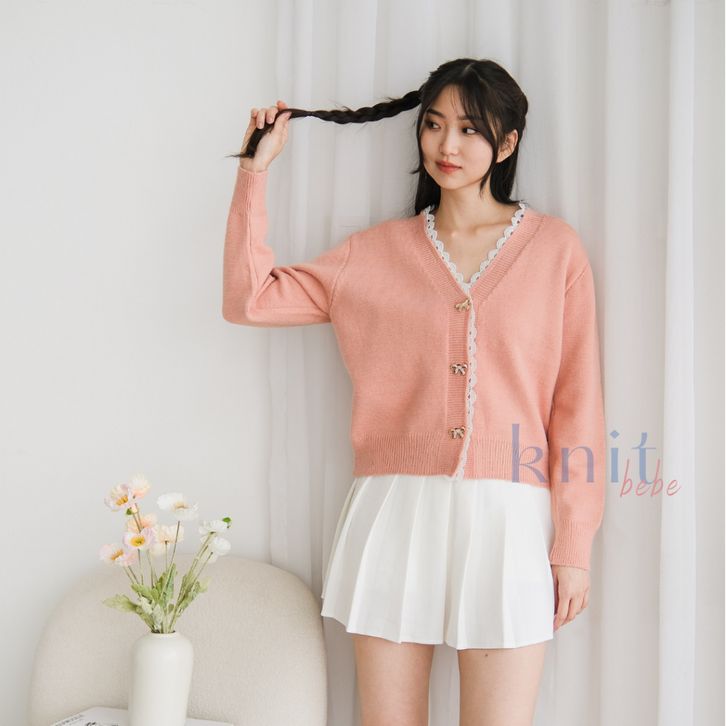 cardigan wanita KNITBEBE - YOONA Atasan Sweater Cardigan Rajut Knit Top Kancing Ribbon