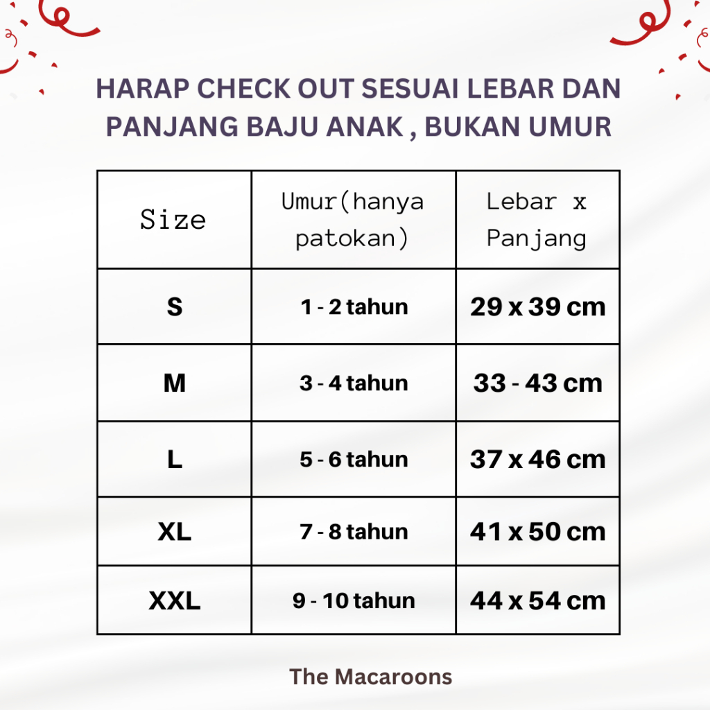 Baju Kaos Atasan Anak Kemerdekaan Indonesia ara Pawai 17 Agustus Umur 1 - 10 Tahun