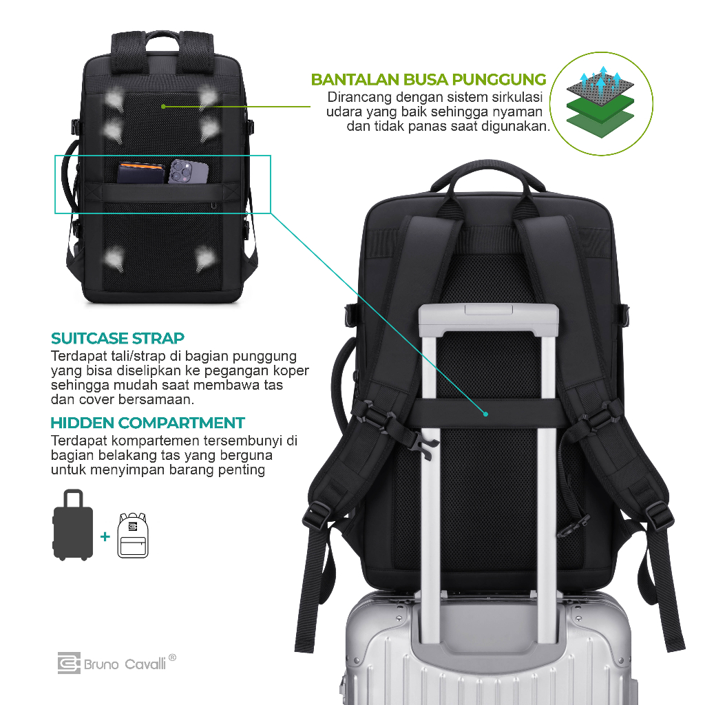 Bruno Cavalli Viaggio 18568 Tas Ransel Multi Fungsi 3in1 Gratis Rain Cover Ransel Laptop