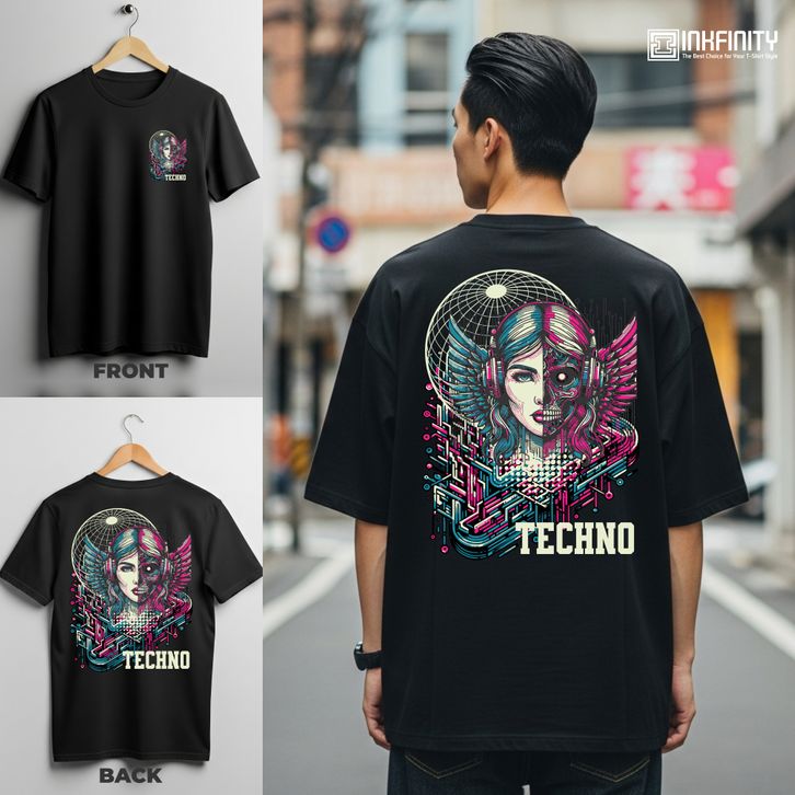 Kaos Unisex “Cyber DJ Girl” – T-Shirt Futuristik Neon untuk Pecinta Musik & Teknologi
