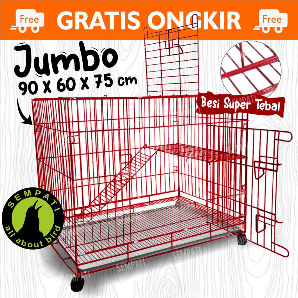 KANDANG KUCING BESI LIPAT SUPER JUMBO SIZE XXL 90X60X75 CM BONUS TATAKAN ALAS SANGKAR KANDANG TERNAK
