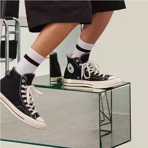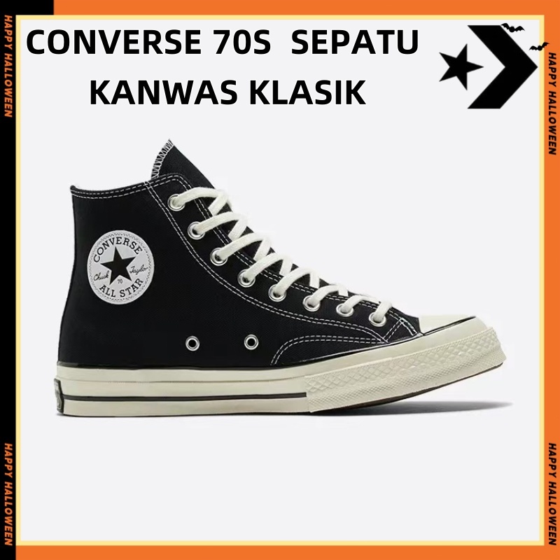 100 PERSEN Original Converse CHUCK 70s Sepatu pasangan HI Unisex Sneakers Black Sepatu kanvas Sepatu kets Skate
