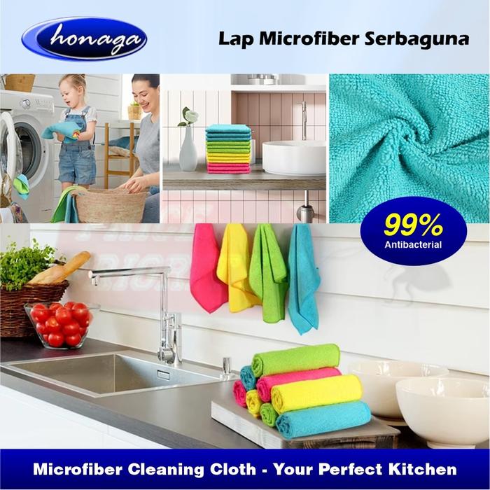 FLASH SALE LAP MICROFIBER SERBAGUNA TEBAL LEMBUT 40 X 40 MERK HONAGA DAYA SERAP TINGGI BIRU KAIN CLEANING HALUS TIDA