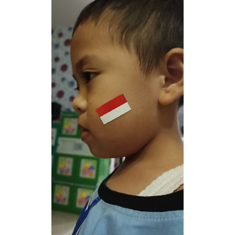 Stiker Pipi bendera Merah Putih(Isi 90Pcs) Stiker Pipi / Stiker Merah Putih / Stiker Bendera Tempelan Hut Ri 17 Agustus