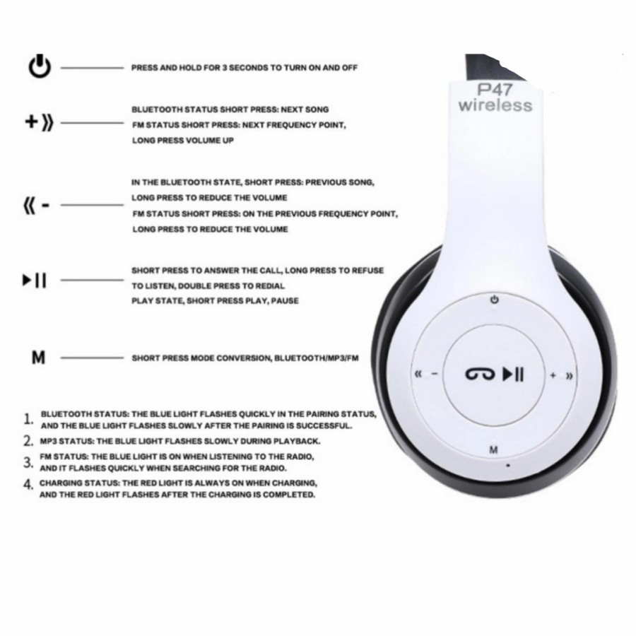 Headphone Headset Bando Bluetooth Wireless Portable Stereo P47