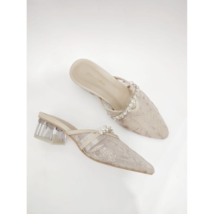 Sepatu hak tahu azwa wedding wanita cream sandal kekinian