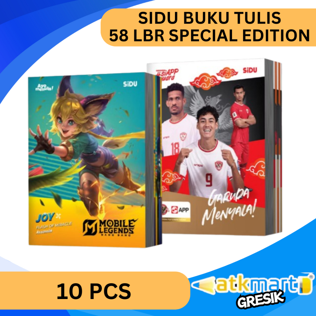SIDU BUKU TULIS GARIS 58 LEMBAR 1 PACK ISI 10 PCS SPECIAL EDITION MOBILE LEGENDS DAN TIMNAS GARUDA