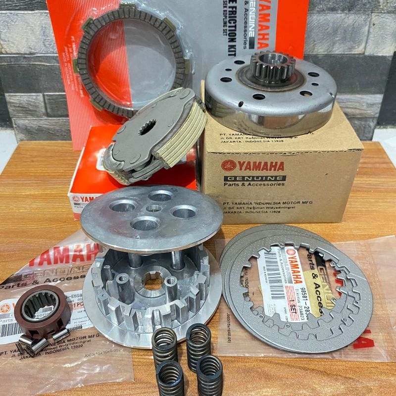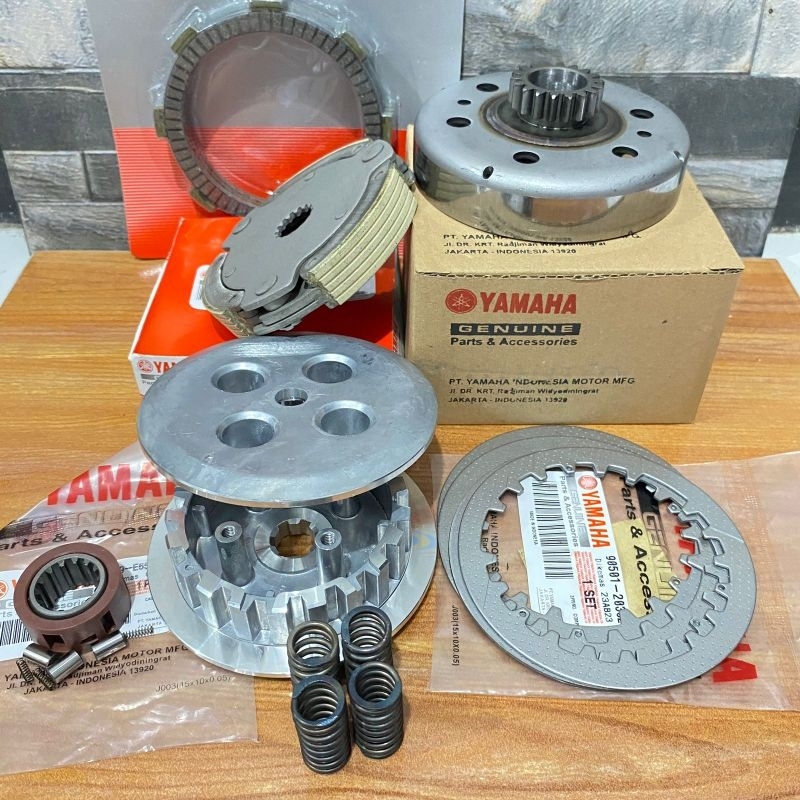 paket kopling komplit Vega r crypton Jupiter mangkok ganda t18 + kampas ganda + cage + kaki 4 dan Lawan + kampas kopling + plat gedek + per set motor Yamaha Jupiter z burhan Jupiter walet Vega r new