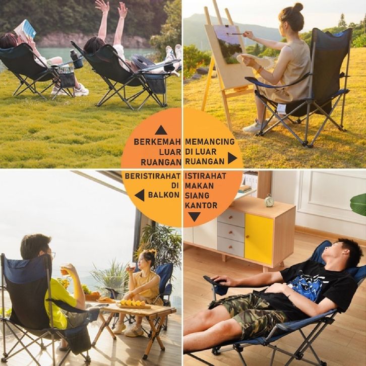 RK - Kursi Lipat Sandaran Tinggi Dengan Sandaran Kepala Busa Kursi Camping Kuat/Lebar/Tebal Beban 150kg