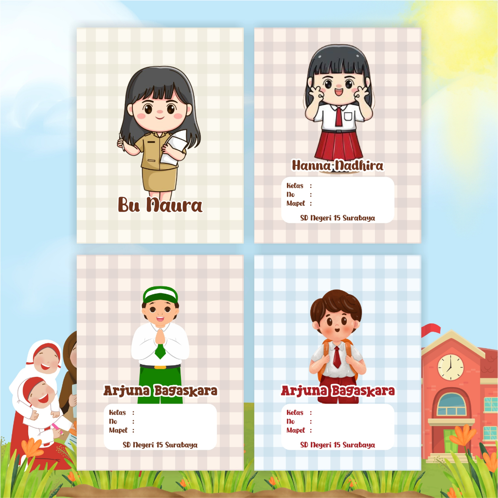 Sampul Buku Custom Part 2(Nama, Nama Sekolah, Kelas & No Absen) Isi 10 pcs/ Cover buku/ Sampul buku Kecil Standart/ Sid